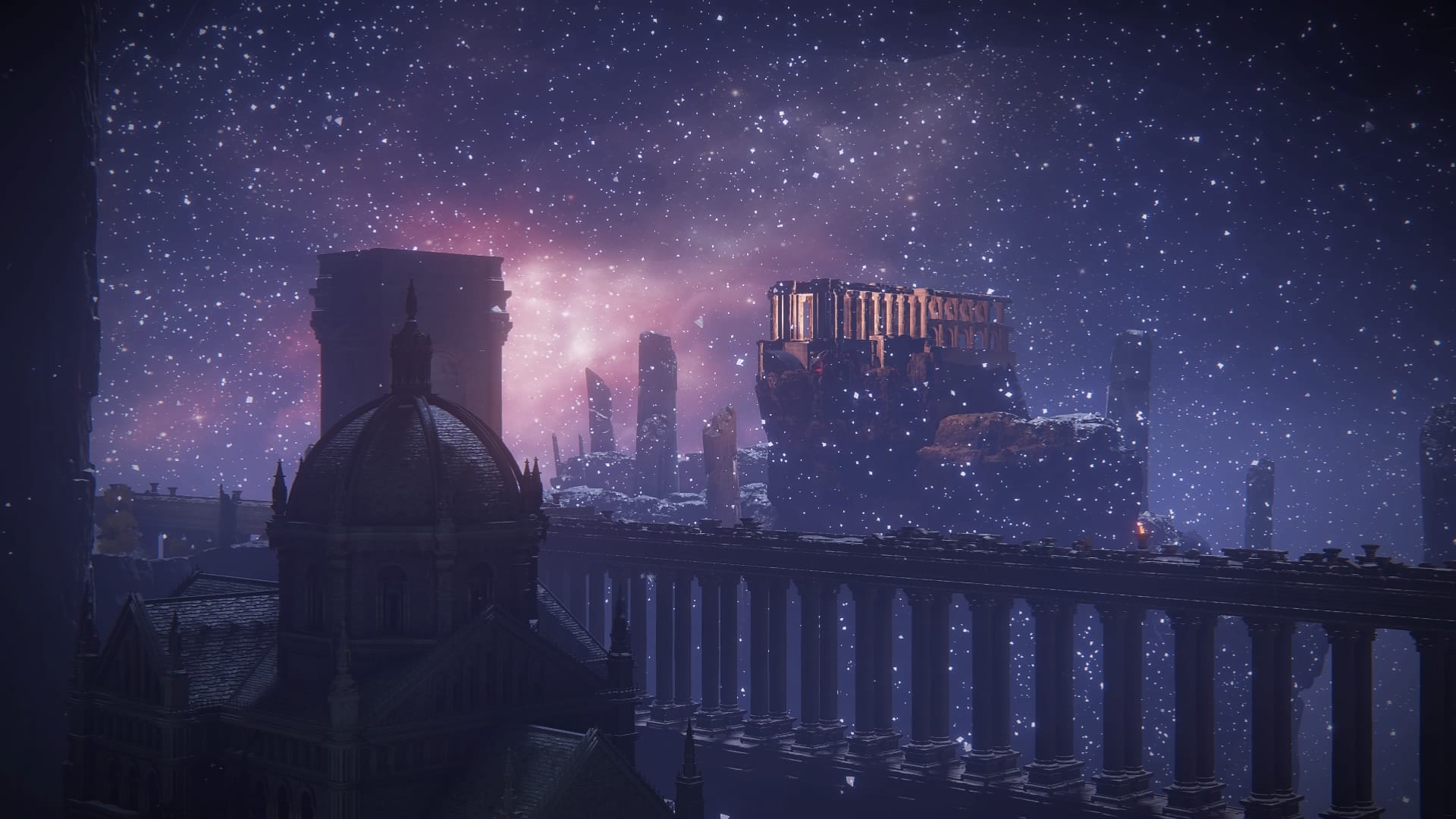 The moon(s) may be the most baffling case, but it is not the only cosmic entity with doppelgängers and dark twins. While the sun is not a major player, having had its main gig as big glowy thing usurped by the Erdtree a long time ago, it does have another, darker aspect: the eclipse, which is venerated, or rather invoked, at Castle Sol. At first glance, the stars don’t seem to have an obvious shadowy reflection, but there is a false or illusory starry night sky in a dark place: the Eternal Cities of Nokron and Nokstella.