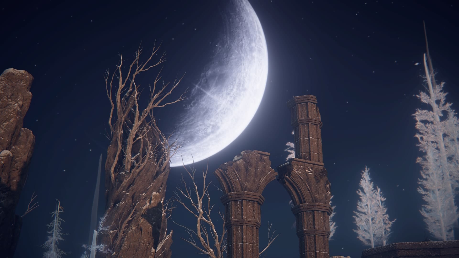 The sentence “What she beheld was cold, dark and veiled in occult mystery” does put a heavy emphasis on Ranni’s subjective perception and interpretation of the entity. And yet, upon visiting the Moonlight Altar Plateau, we can actually see a second, darker moon looming in the night sky. Is this Ranni’s Dark Moon? And is it an actual celestial object, or rather an illusion, Ranni projecting her own sigil and putting her mark on the face of the cosmos?