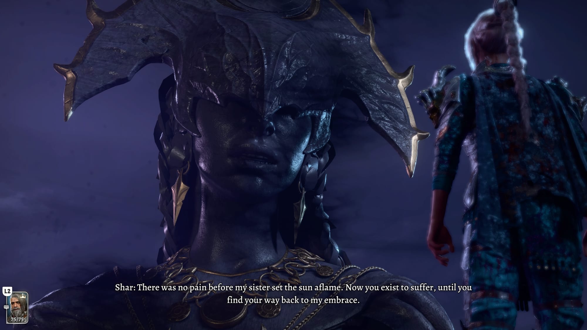 While the problem of consciousness, of being awake to the cruel ironies of life, is most obvious in the teachings of the Sharrans, it suffuses the entirety of BGIII. Every cult, group and philosophy in the game seems to have its own interpretation of the place of pain in life and how to make sense of it—whether by trying to either justify, accept, reject or bargain with it. While the Sharrans seem to aspire to some sort of inner death within life, the Bhaalists, for example, see a much simpler solution, as seen in a verse by Invoker Grimlark: