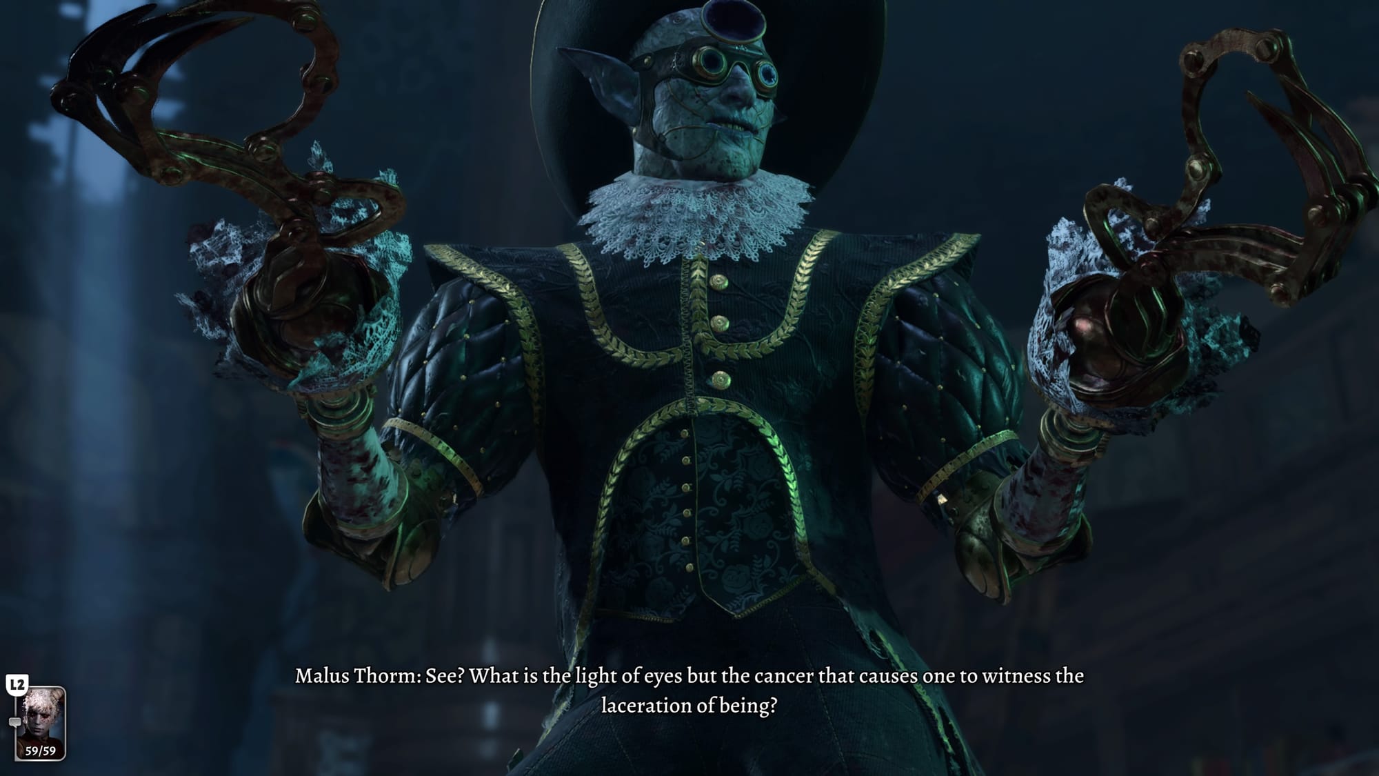 By externalising something inherent to ourselves and turning it into a world-threatening fantasy villain, BGIII gives us an opportunity to face some of our deepest, most abstract anxieties head-on. In the end, we'll have reasserted ourselves in the face of brain parasites and the voices of murderous gods in our heads and reestablished the fragile sense of self and control. Whether you see in this an uplifting confrontation with existential dread or—as Ligotti probably would—merely a colourful band-aid covering the laceration of being depends entirely on your own predisposition towards pessimism.